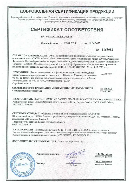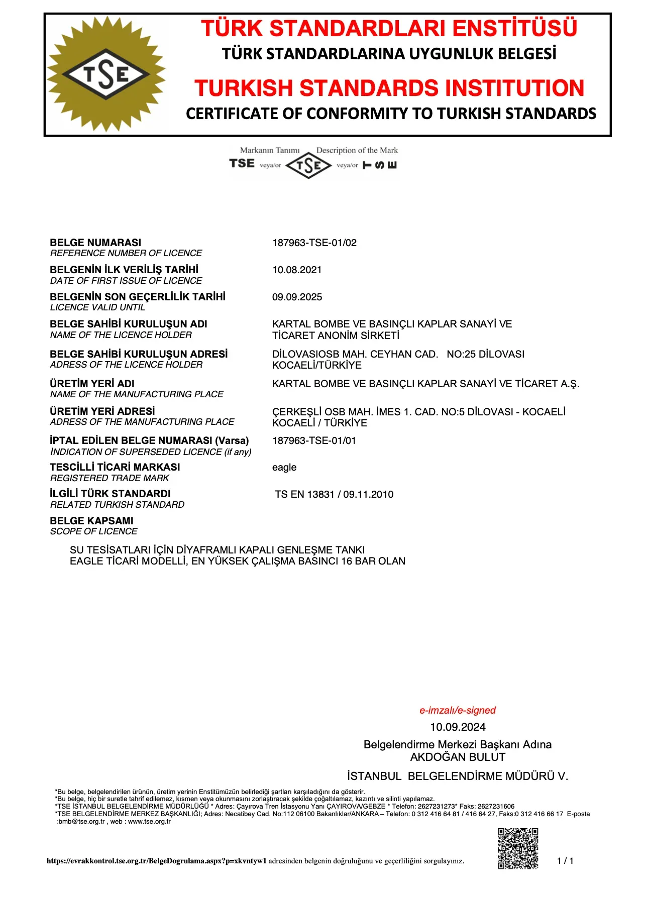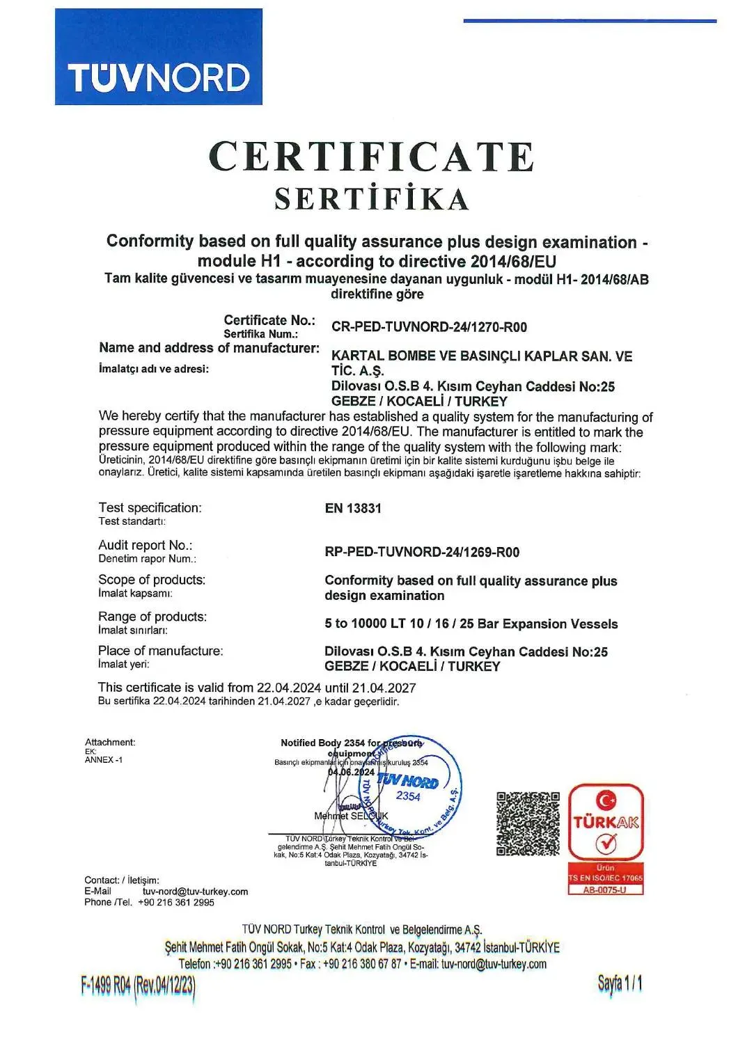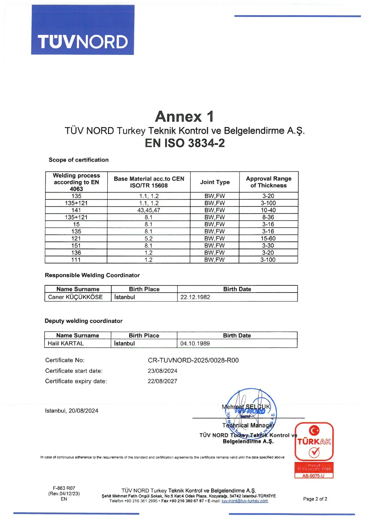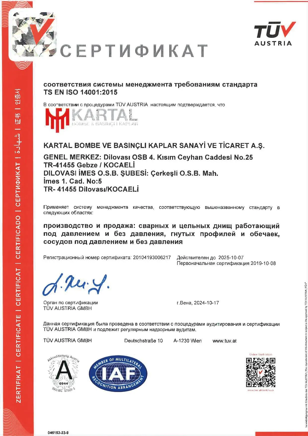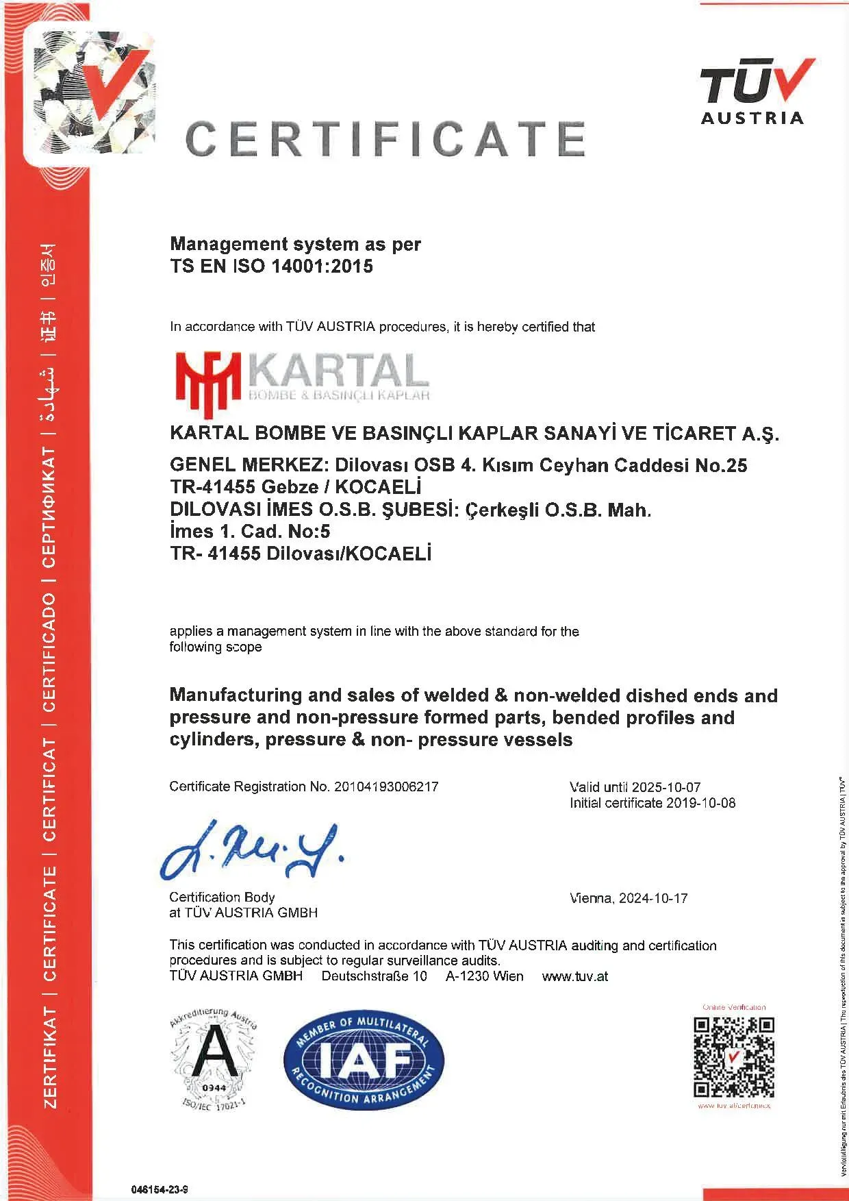 Kartal İmalat, sahip olduğu kalite belgeleri ile küresel pazarda güvenilir bir marka olmaya devam etmektedir.